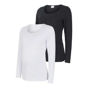 Ein ideales Basic im Doppelpack für die Schwangerschaft und die Zeit danach: Das Umstands- und Still-Shirt Emma Nell von Mamalicious besteht aus einem elastischen, weichen Baumwoll-Mix. Sein Rundhalsausschnitt lässt sich unkompliziert nach unten ziehen, um das Baby anzulegen. 2er-Pack Umstands- und Still-Shirt Emma Nell unifarben (2 verschiedene Farben) erweiterbarer Rundhalsausschnitt Jersey elastischer Baumwoll-Mix Das in zwei Farben kommende Duo kannst Du vielseitig verwenden. Die Langarmshirts sind unter Sweatjacken ebenso angesagt wie einfach so zu Lieblingsjeans. Der elastische Baumwoll-Mix in stretchiger Jersey-Qualität gibt Dir jederzeit ein gutes Tragegefühl und genügend Bewegungsfreiheit. Damit Du Deinen Mini unkompliziert anlegen kannst, ist der Ausschnitt im Lagen-Design gehalten. Du kannst die obere Partie einfach nach unten ziehen, um an die Still-Öffnung des Shirts zu gelangen.