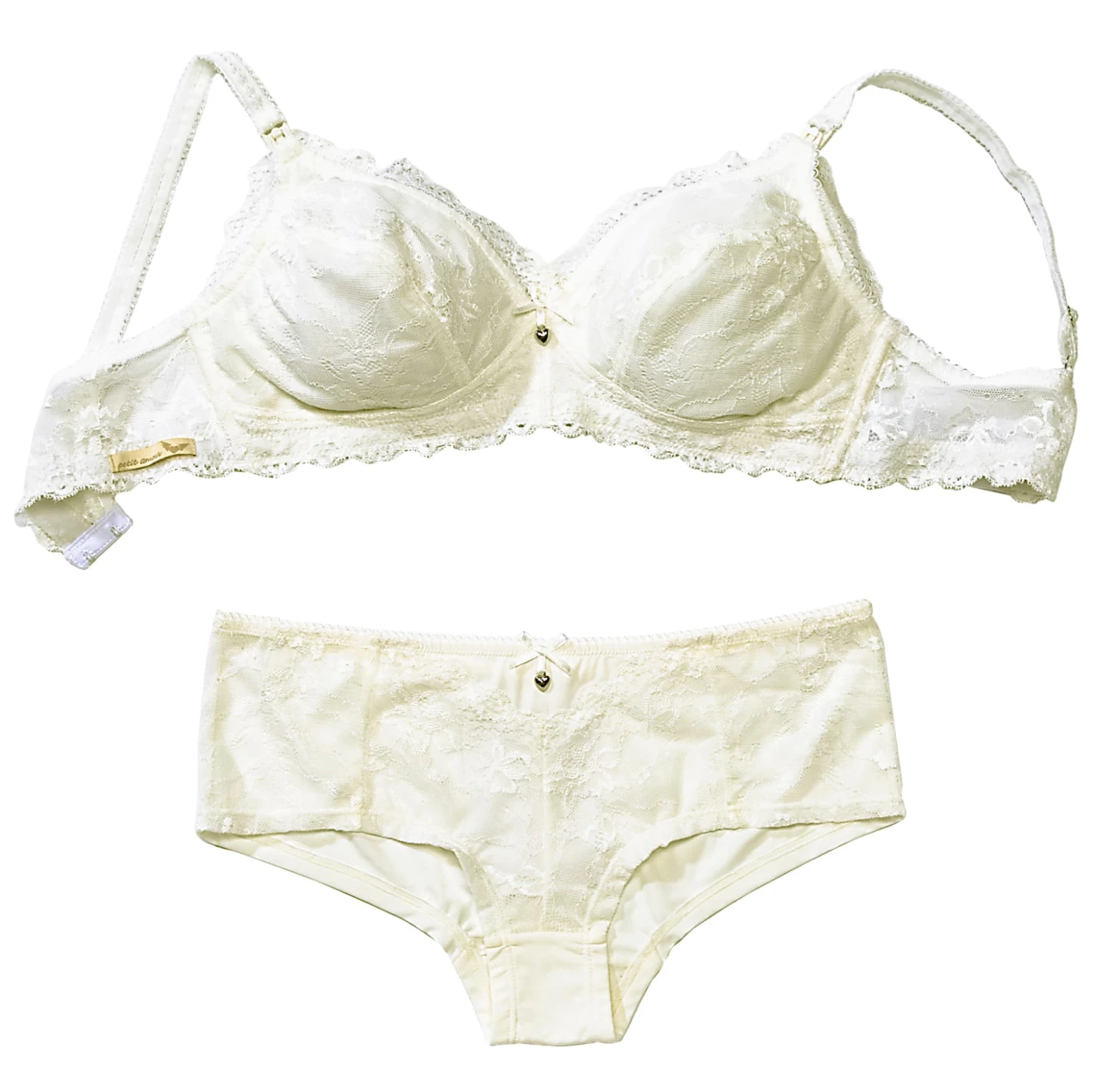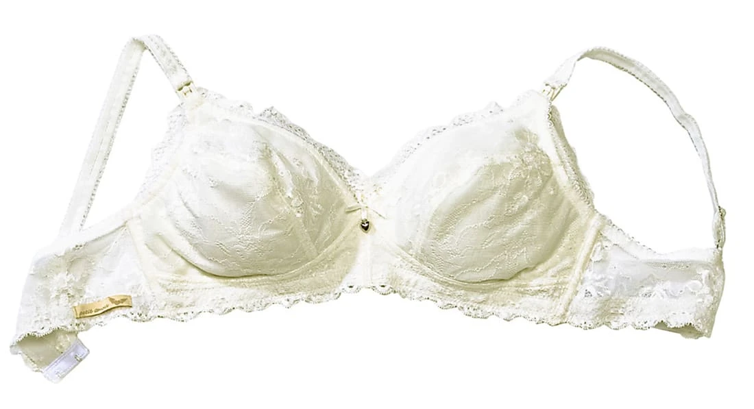Still-BH und Schwangerschafts-BH komplett aus feiner Spitze gefertigt, als Soft-BH ohne Bügel weich gefüttert mit Bauwolle in Cremeweiß passt Körbchengröße C/D/E.