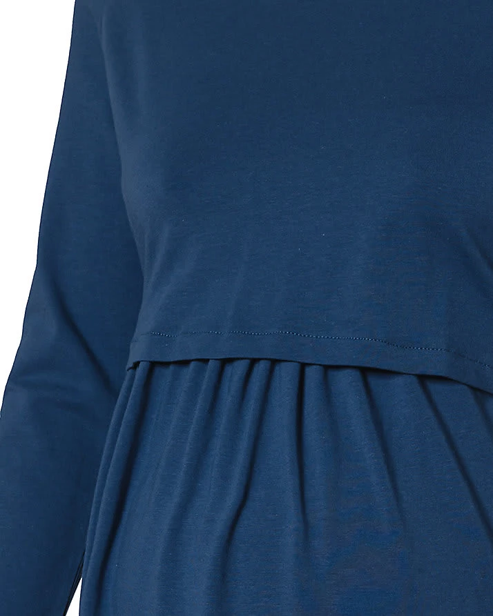Das BEBEFIELD Umstandskleid CORA bietet durch den Schnitt Platz für den wachsenden Bauch. Dank der zweilagigen Vorderseite ist auch das Stillen kein Problem.