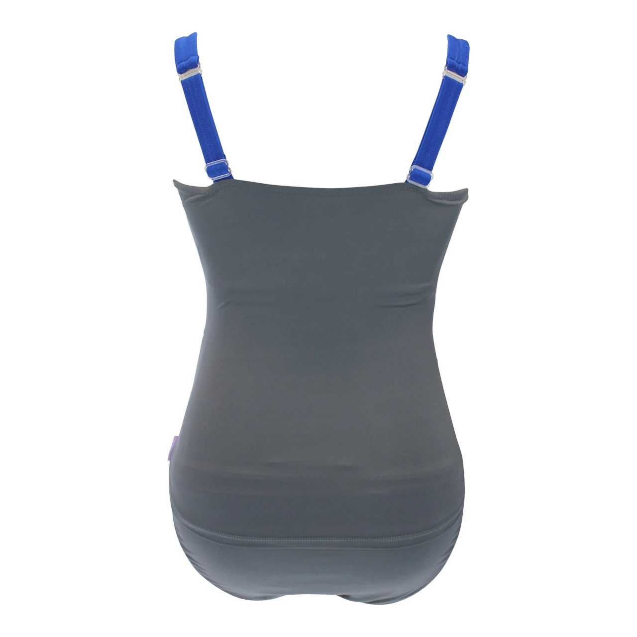 Der Umstandstankini Alena ist eine coole Kombination als Umstandstankinitop in Bandeauform mit passendem Slip in Trendgrau mit tintenblauen Glanzakzenten. Die Körbchengrößen F und G-Cup kommen wunderbar dezent zur Geltung bei diesem Retro-Tankini für Schwangere. Das Tankinitop ist mit 3-fach verstellbarem Bügel-BH Teil innen ausgestattet und durch die Verarbeitung von speziell für große Umstandsbadmodengrößen entwickelten Bügeln und Materialien verstärkt. Das Umstandstankinitop hat verstellbare, breite, weiche Träger welche einen sehr guten Halt und ein gutes Tragegefühl geben. Ein hochwertiges Silikontape liegt innen um die obere Kante des Tops und sorgt dafür, dass Nichts verrutscht. Geeignete Bügel und eine weiche, leicht gepolsterte Schale stützen die Brust in diesen großen Körbchengrößen. Die kunstvolle Schleife und die Glanzeinsätze sind ein toller Hingucker.