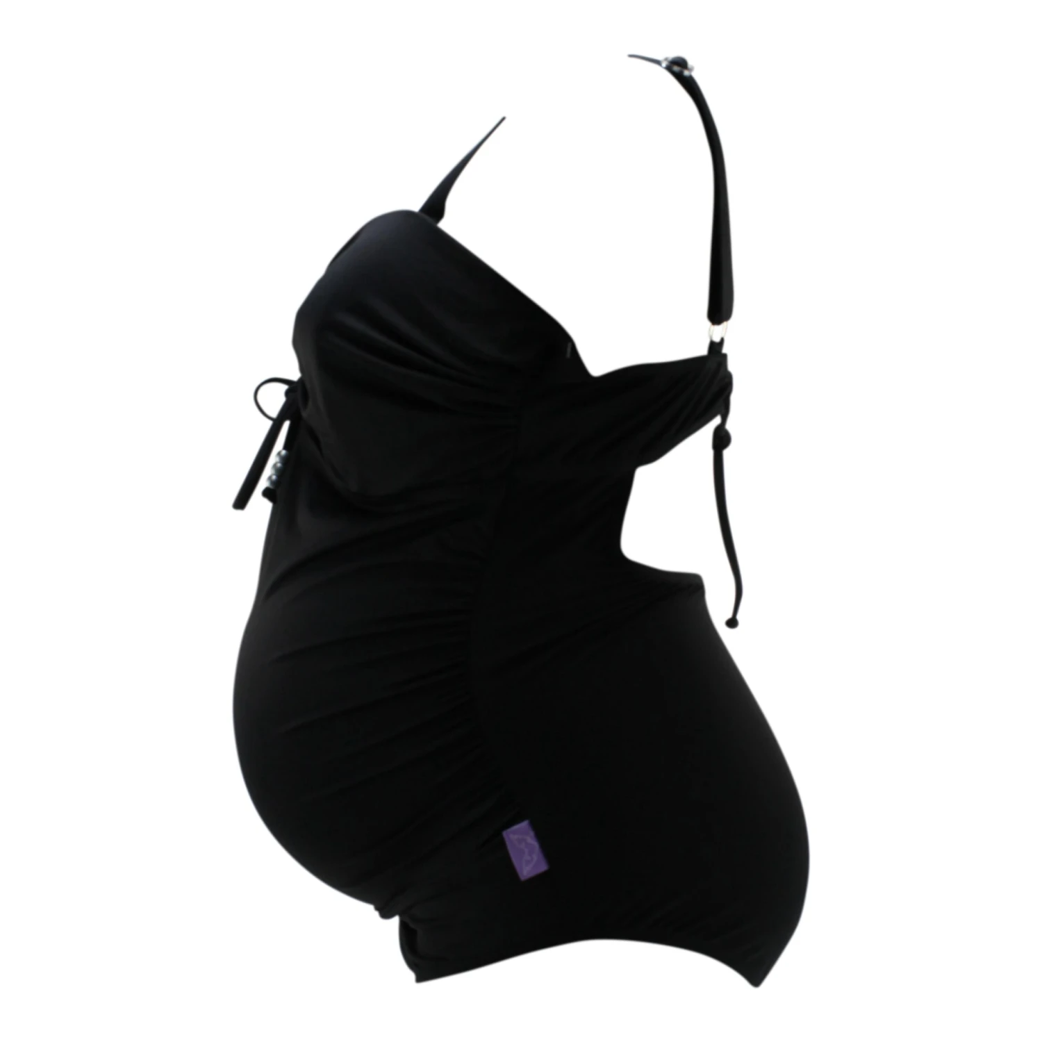 Der Umstandsbadeanzug CAMERONA kommt in Schwarz und im modernen Bandeau-Style besonders attraktiv daher. Er wurde entwickelt für große Körbchengrößen F/ G-Cups mit speziellen Bügeln. Dieser Umstandsbadeanzug kommt wunderbar zur Geltung in unserem innovativen und edel-matten Material in einem spritzigen Sangriarot, garniert mit matt-silbernen Perlendetails.
